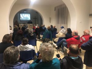 L’incontro è stato introdotto dal Presidente dell’Azione Cattolica parrocchiale, Pietro Rossi, che ha ricordato il carisma del Santo e ha proiettato un interessante contributo, un video con foto in bianco e nero della storia del Centro parrocchiale “Frassati”, che negli anni si è sempre distinto per essere stato un luogo di formazione e crescita spirituale per i giovani.